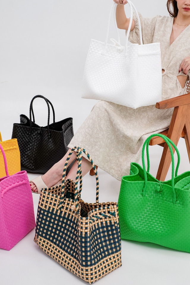 花のようにやさしく、毎日を彩るエシカルバッグ。 バリ島に咲く「プチュク(ジャスミンの一種)」の繊細な美しさにインスピレーションを得たハンドメイドバッグ。軽くて丈夫なリサイクルプラスチック素材を使い、現地の職人たちが一点ずつ丁寧に編み上げています。ふっくらと丸みのあるシルエットと、品のある編み目のデザインが魅力。カジュアルな装いにはもちろん、フェミニンなコーデにもぴったり。日常使いからお出かけまで、幅広く活躍します。 ■ カラーバリエーション ホワイト、ピンク、イエロー、グリーン、ブラックの5色展開。 ■ 素材/生産国 ・リサイクルプラスチックを使用し、バリの工房で丁寧に手作業で製造されています。 ■ ご注文・配送について ・ご注文の際は在庫状況をご確認のうえ、できるだけお早めにお手続きください。通常、発送は2〜5営業日以内に行われます。 ■ その他のご案内 ・ハンドメイド製品の特性上、デザインやサイズに若干の個体差がある場合がございますが、それも一点ものの魅力としてお楽しみください。 ・商品に関するご質問がございましたら、ショップのお問い合わせフォームよりお気軽にご連絡ください。皆さまのご注文を心よりお待ちしております。 サイズ(縦×マチ×横):42 × 21 × 32 cm