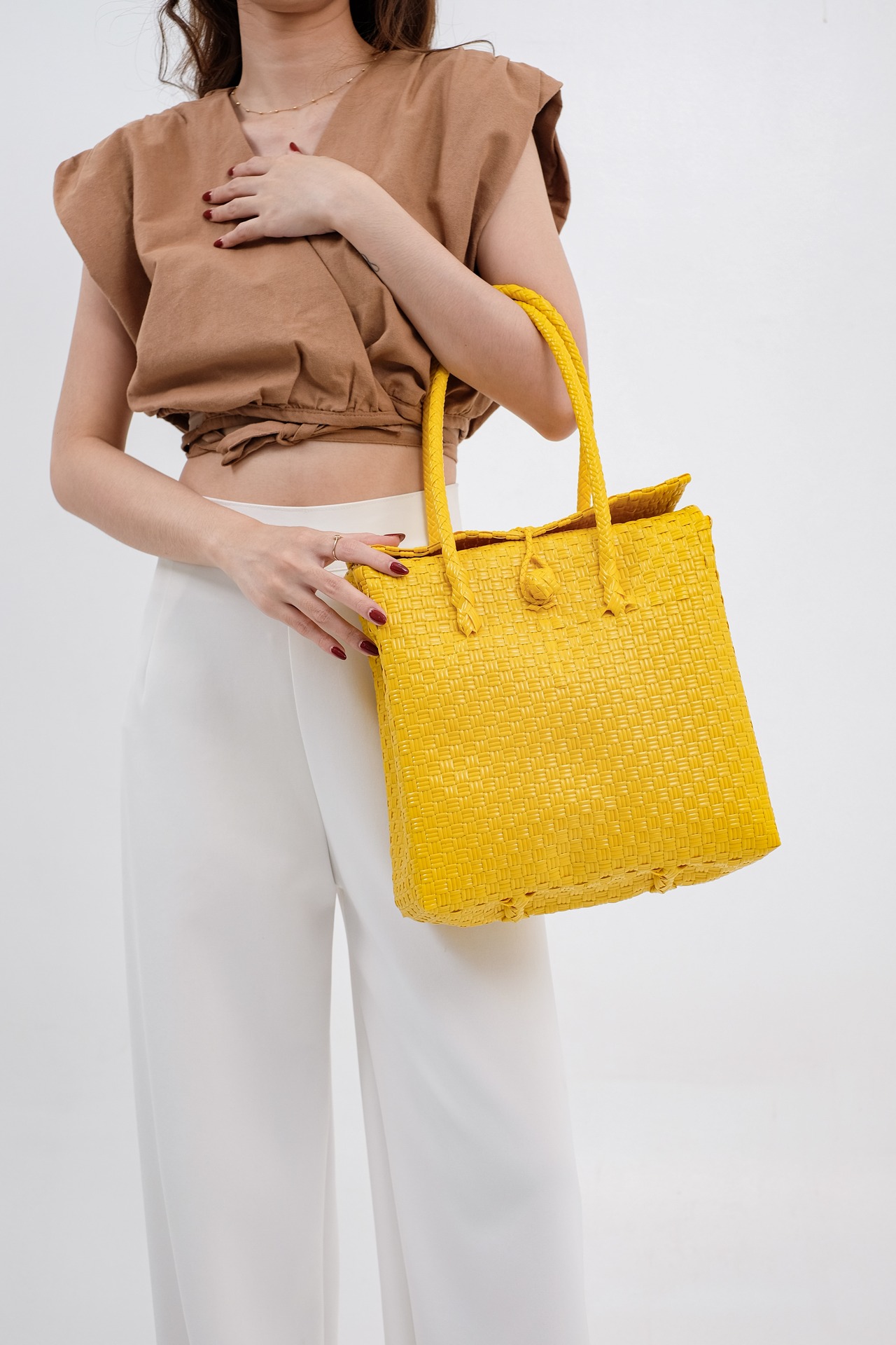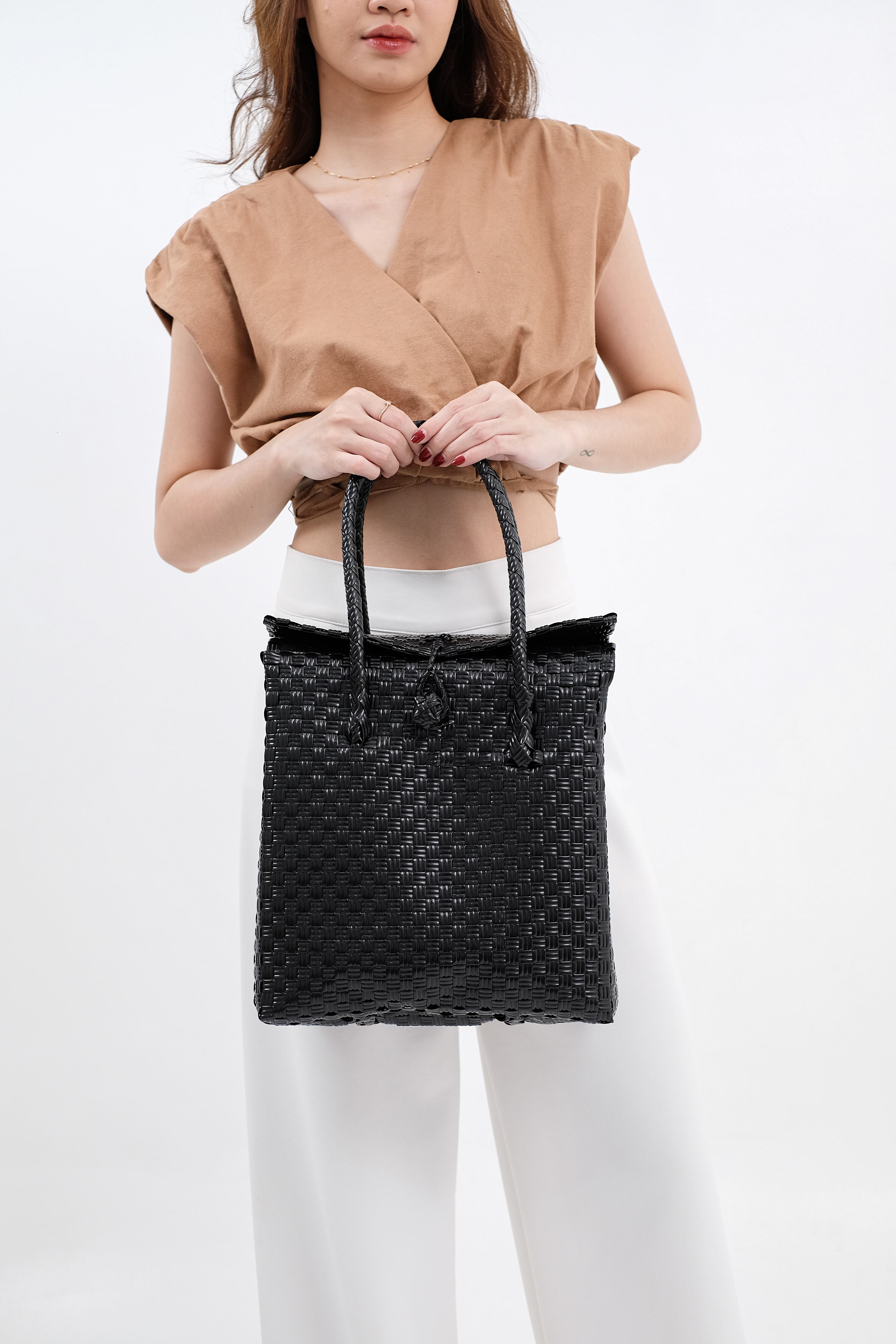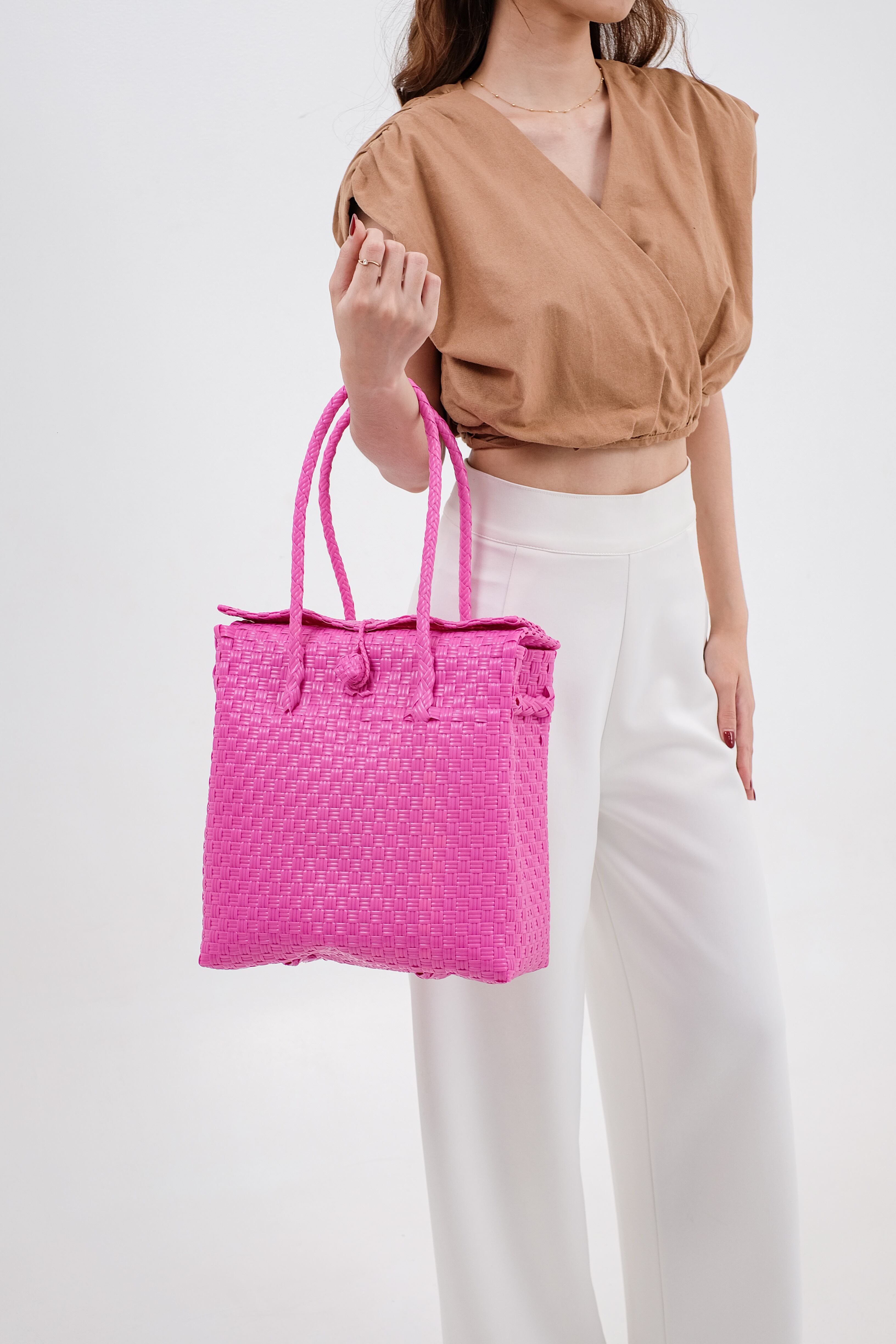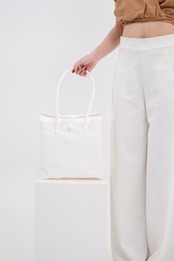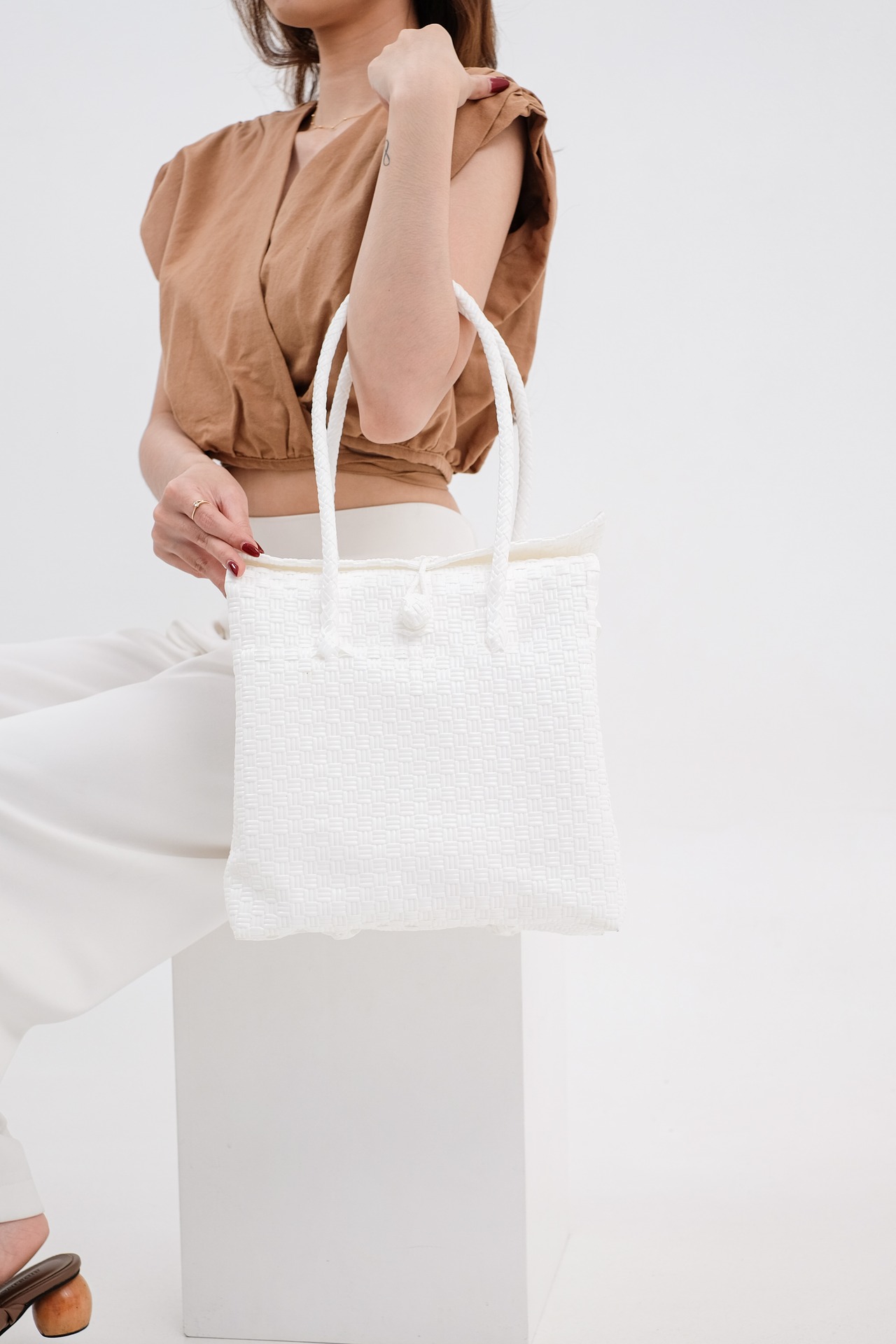 花が咲いたように優しく、人の目を引くデザイン。バリ島のプリメリア「ジュプン」の姿にインスパイアされた、ジュプン・ジャリバッグです。リサイクルプラスチック素材を編み上げたこのバッグは、見た目の華やかさだけでなく、環境にも優しいのがうれしいポイント。軽量で持ちやすく、丸みあるフォルムが手に馴染みます。普段はカジュアルで可愛い相棒に、ちょっとしたフォーマルな場面ではアクセントとしても活躍。持つだけで気分が明るくなる、そんなバッグです。