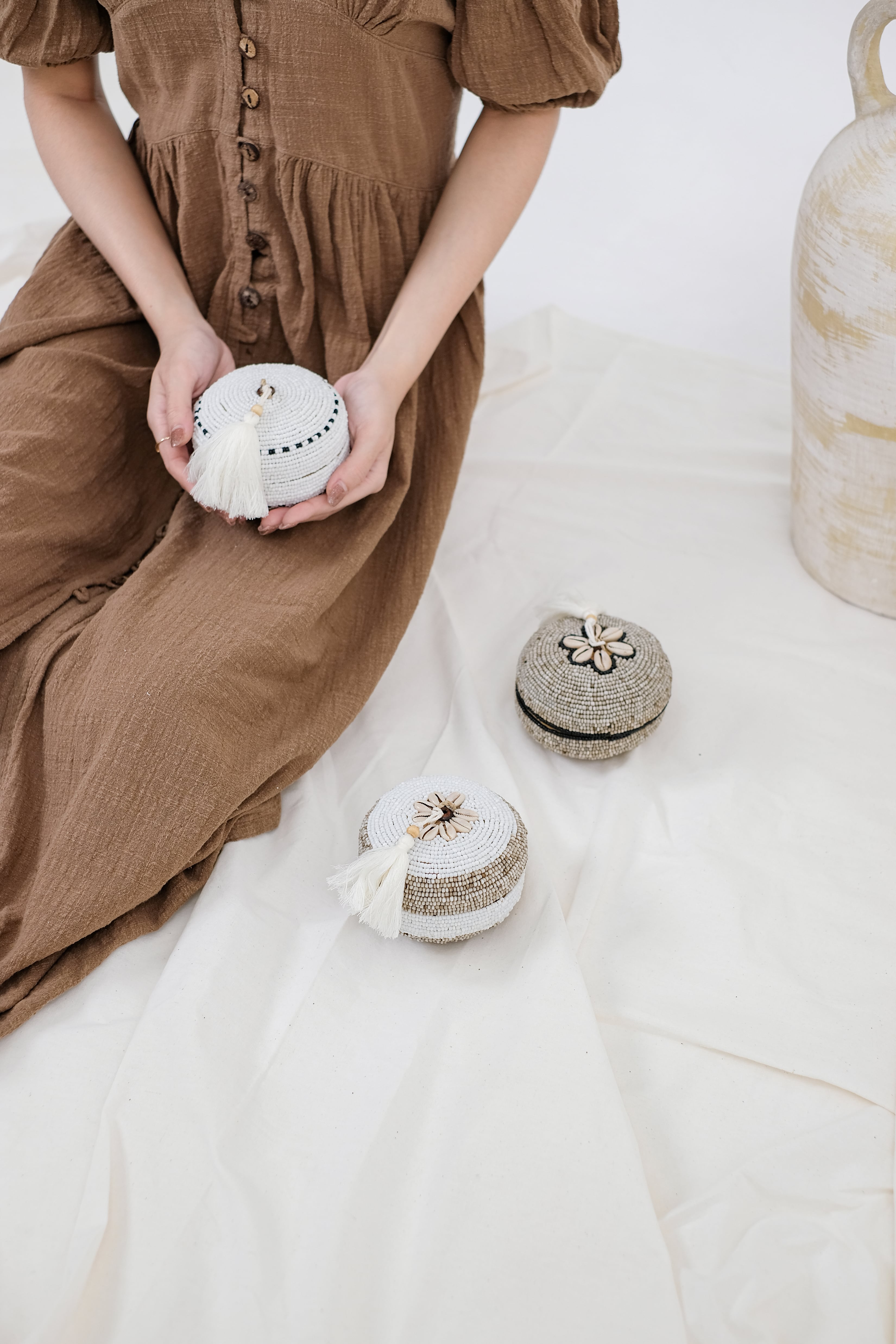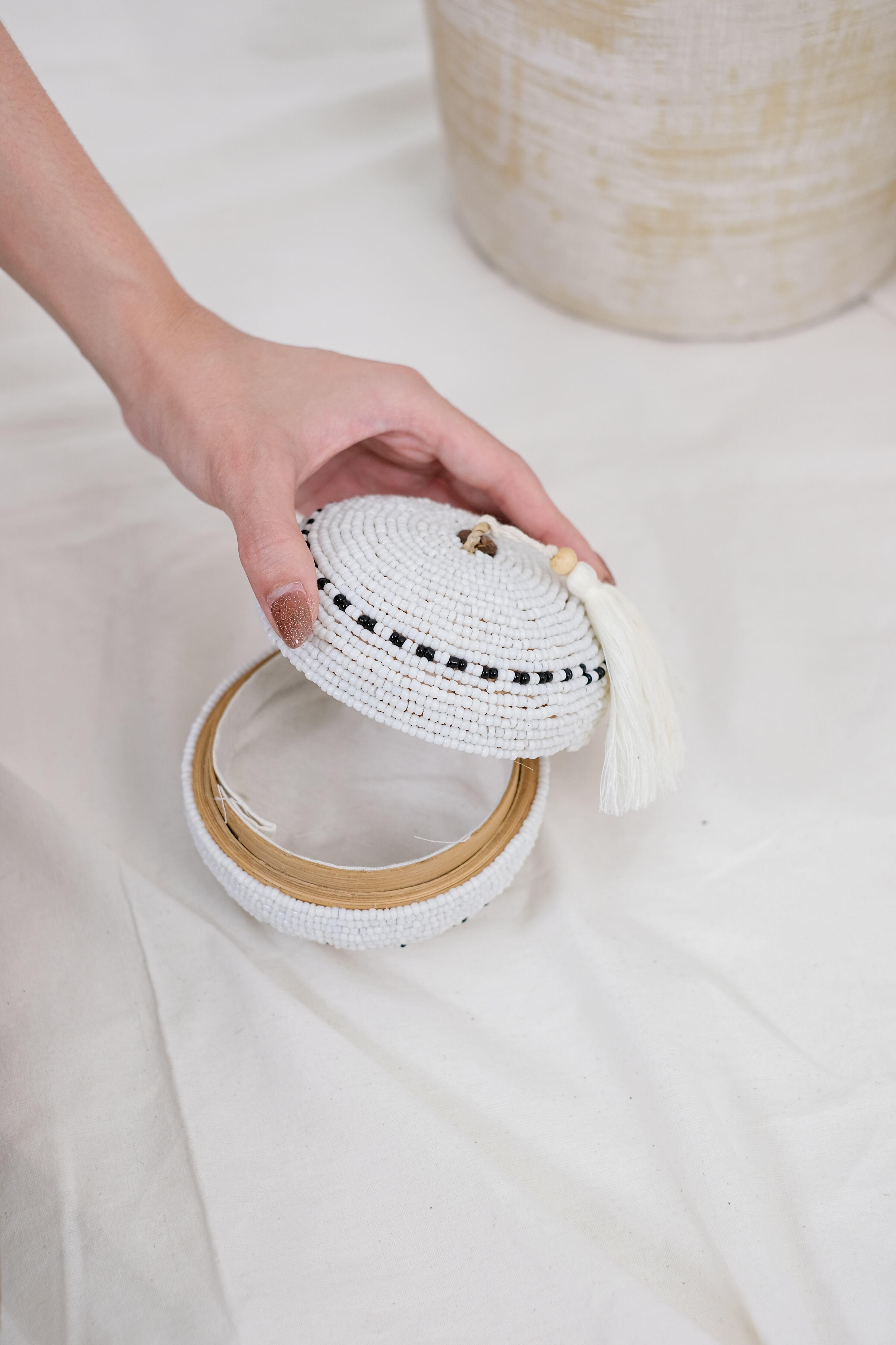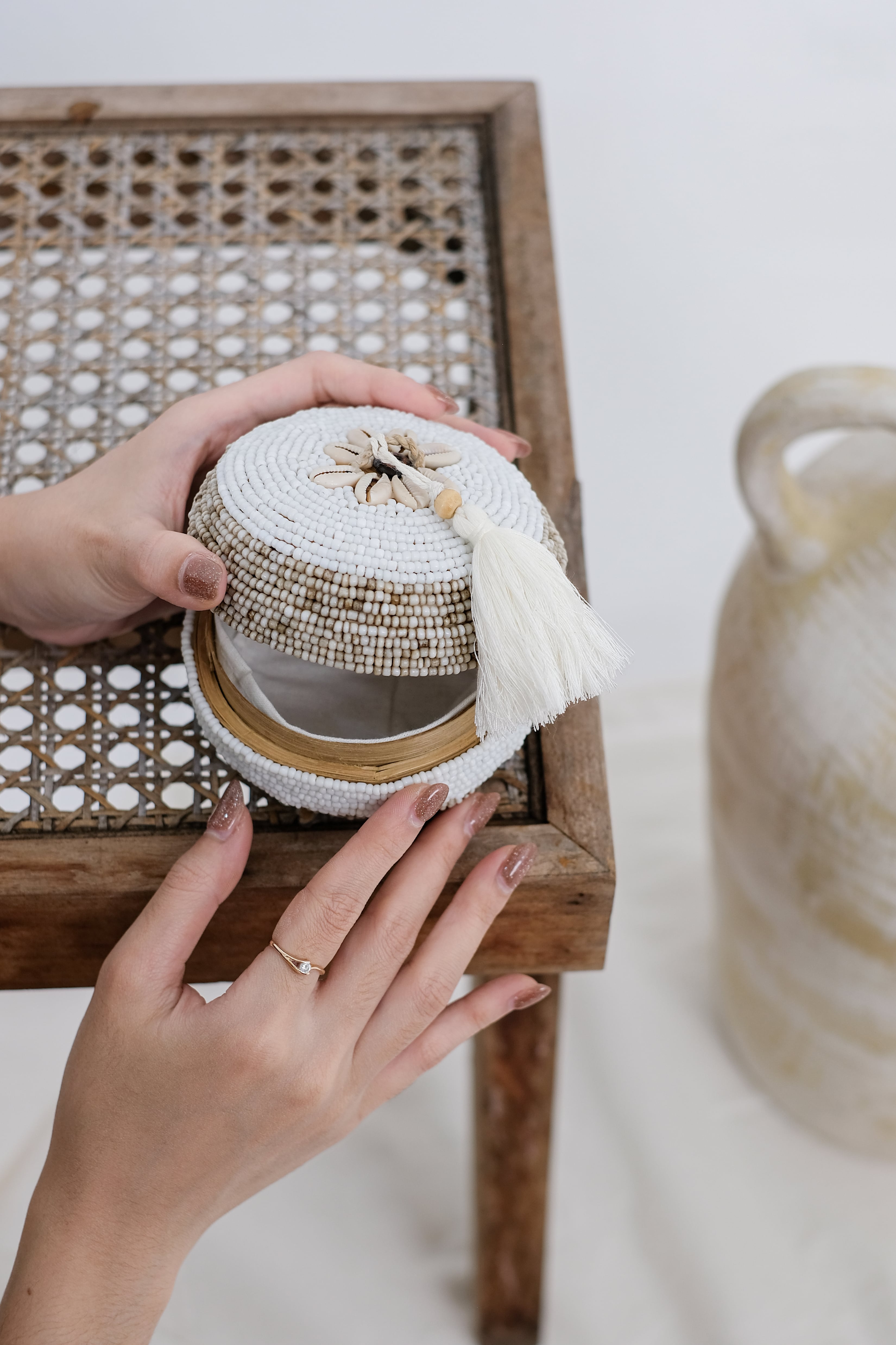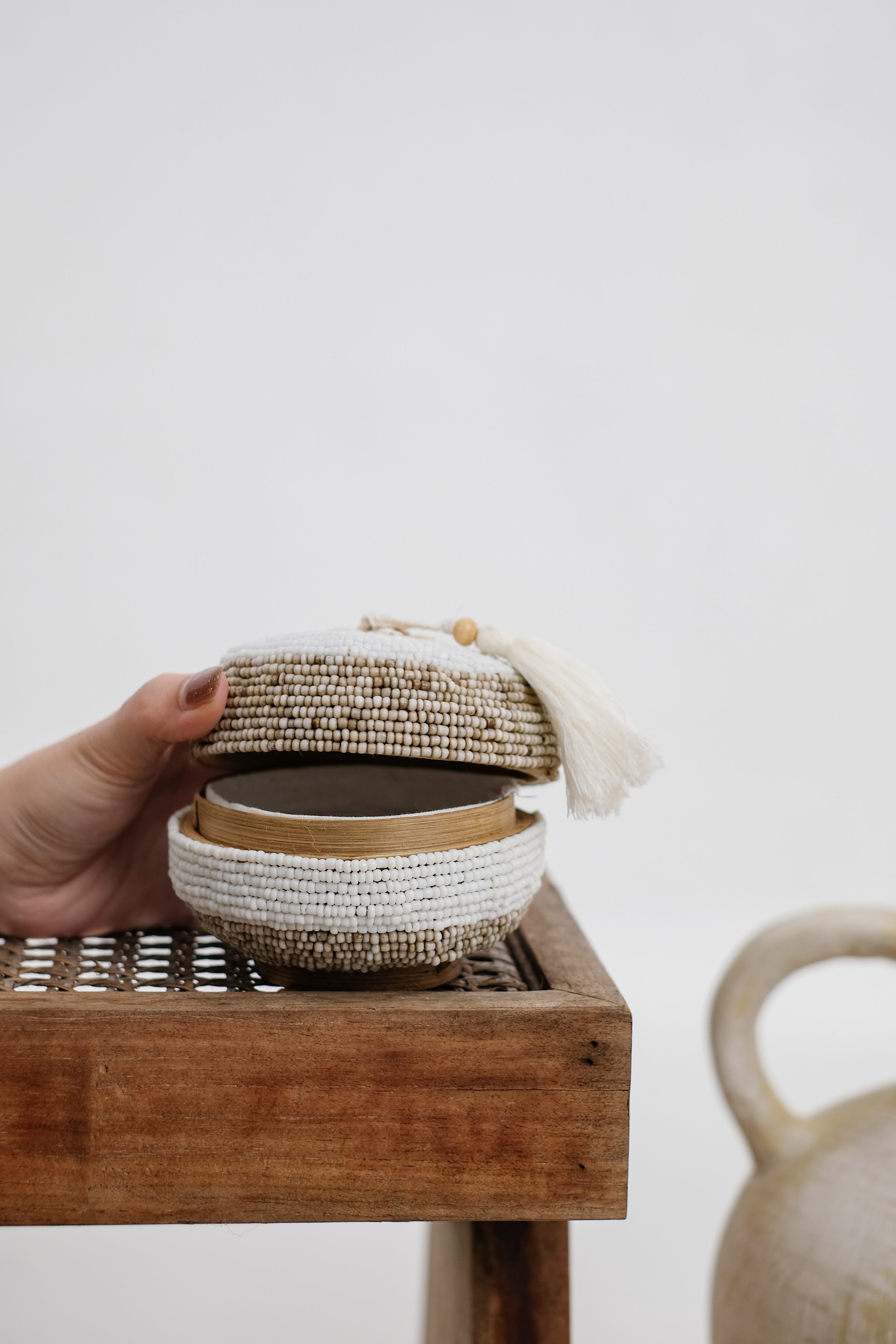 ベセッ・ビーズは、バリ産の美しいビーズで飾られ、竹を素材に丁寧に仕上げられた、自然な優雅さが魅力の収納アイテムです。エコフレンドリーでありながら実用性にも優れており、ユニークなデザインが空間の美しさを引き立てます。日常の小物整理にはもちろん、インテリアとしても活躍し、バリの豊かな文化を暮らしの中に取り入れることができます。