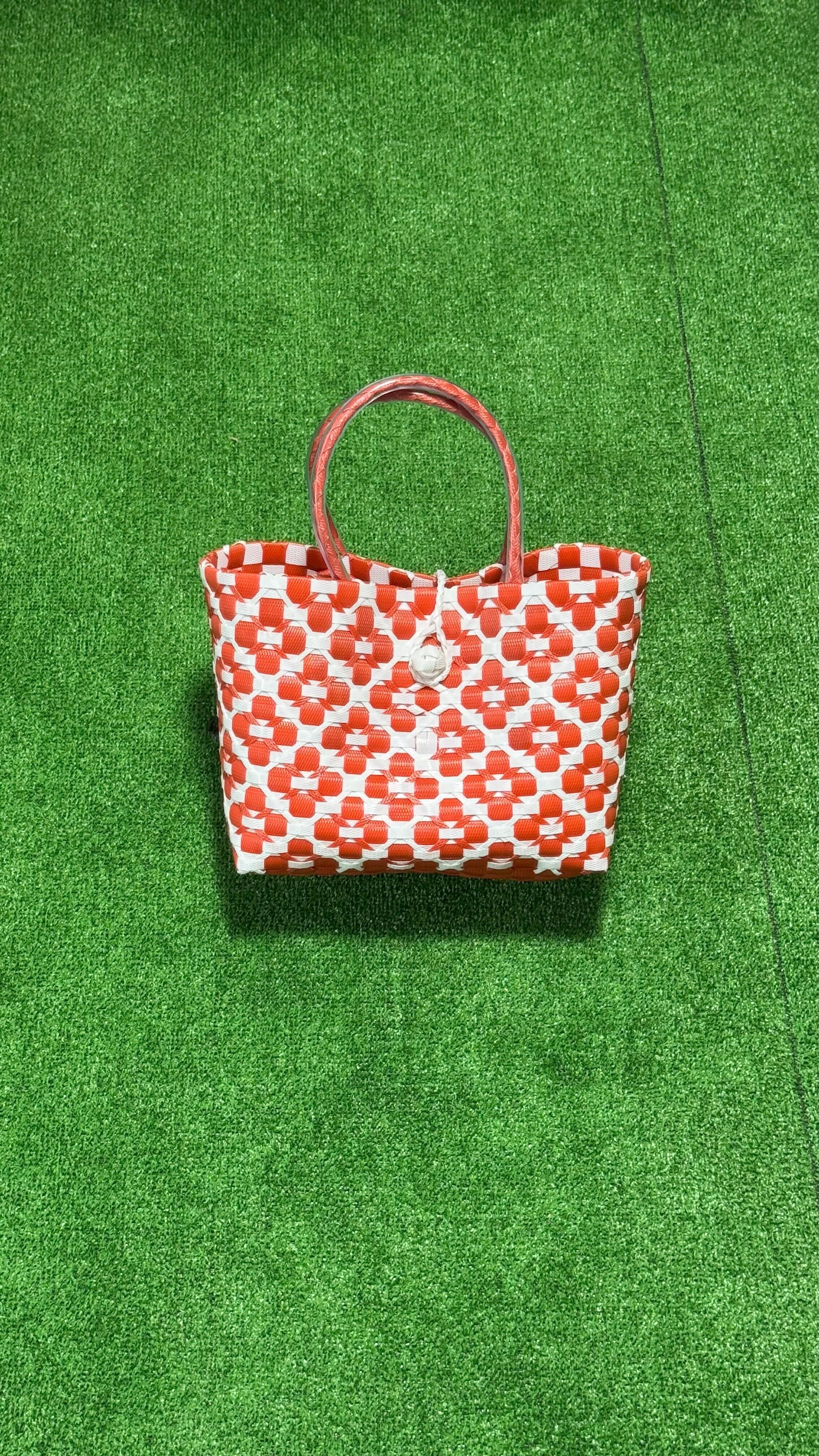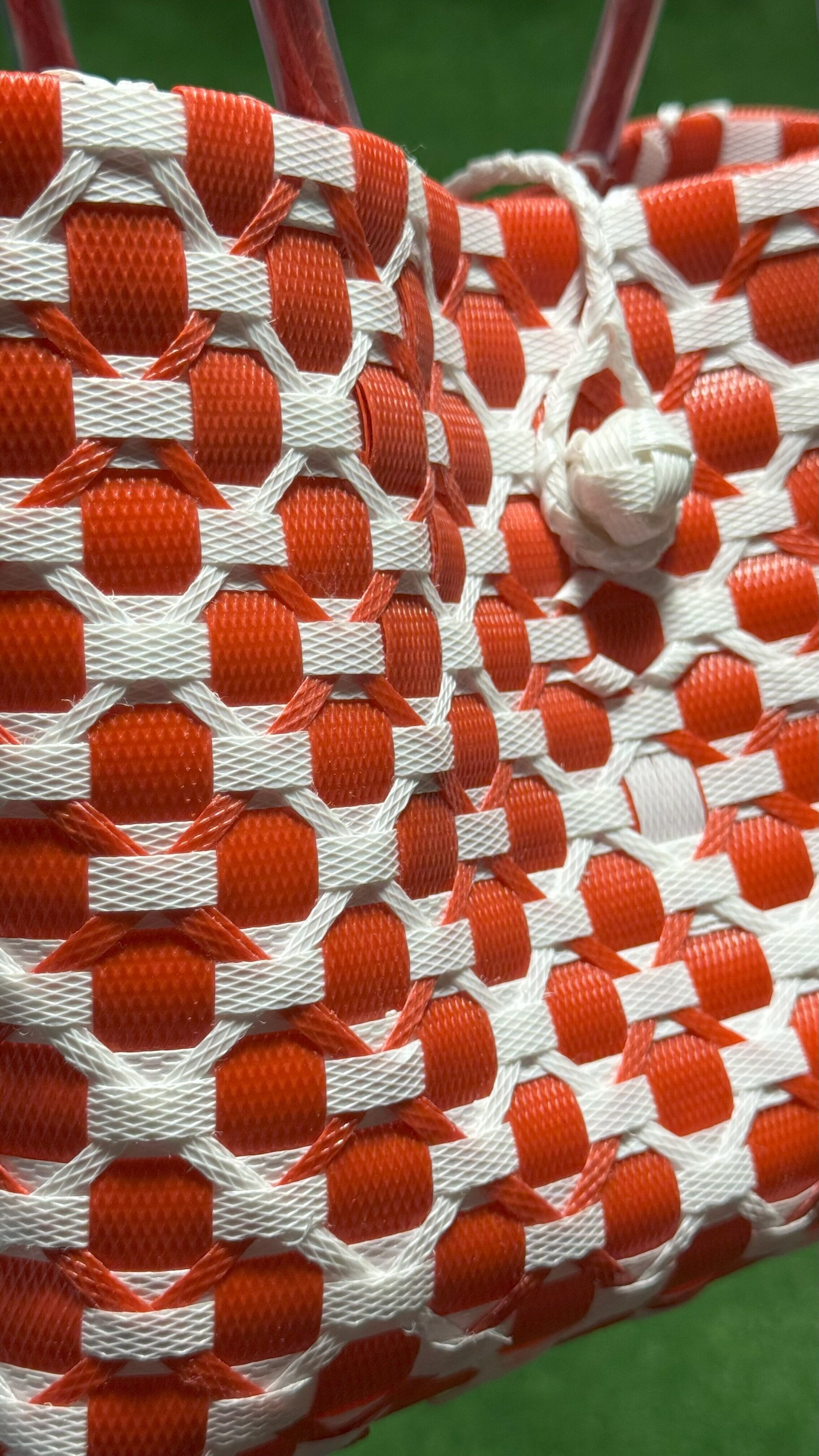 サンダット・パサールバッグは、魅惑的なバリの花「サンダット」からインスピレーションを得た、洗練されたデザインが魅力です。熟練したバリの職人によって、再利用プラスチックを用いて丁寧に作られており、スタイリッシュな外観だけでなく、サステナビリティという意味ある物語も込められています。