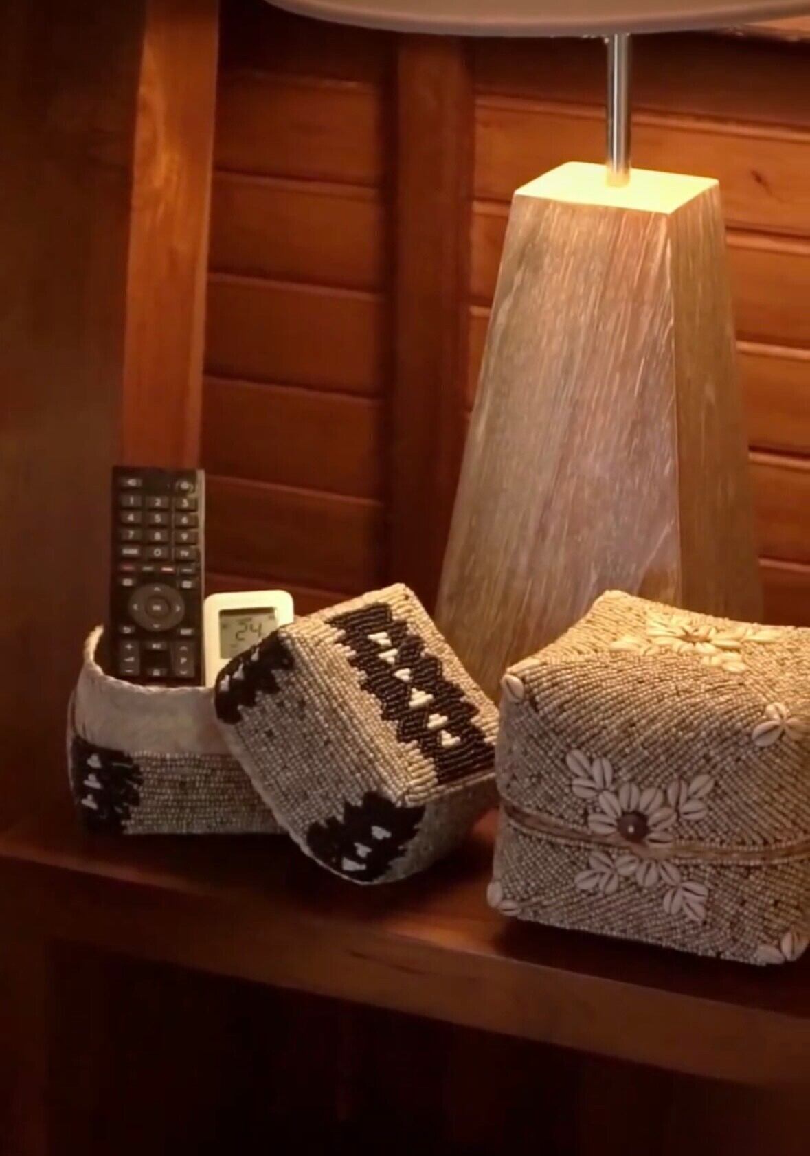 ジュプン・クベンソカシは、竹とビーズを使用して丁寧に手作りされた収納アイテムで、お部屋を彩る美しいインテリアとしてもおすすめです。機能性とアート性を兼ね備えたこのユニークなアイテムは、空間に自然の美しさを加え、バリの豊かな文化を感じさせるデザインが暮らしに温かみをもたらします。