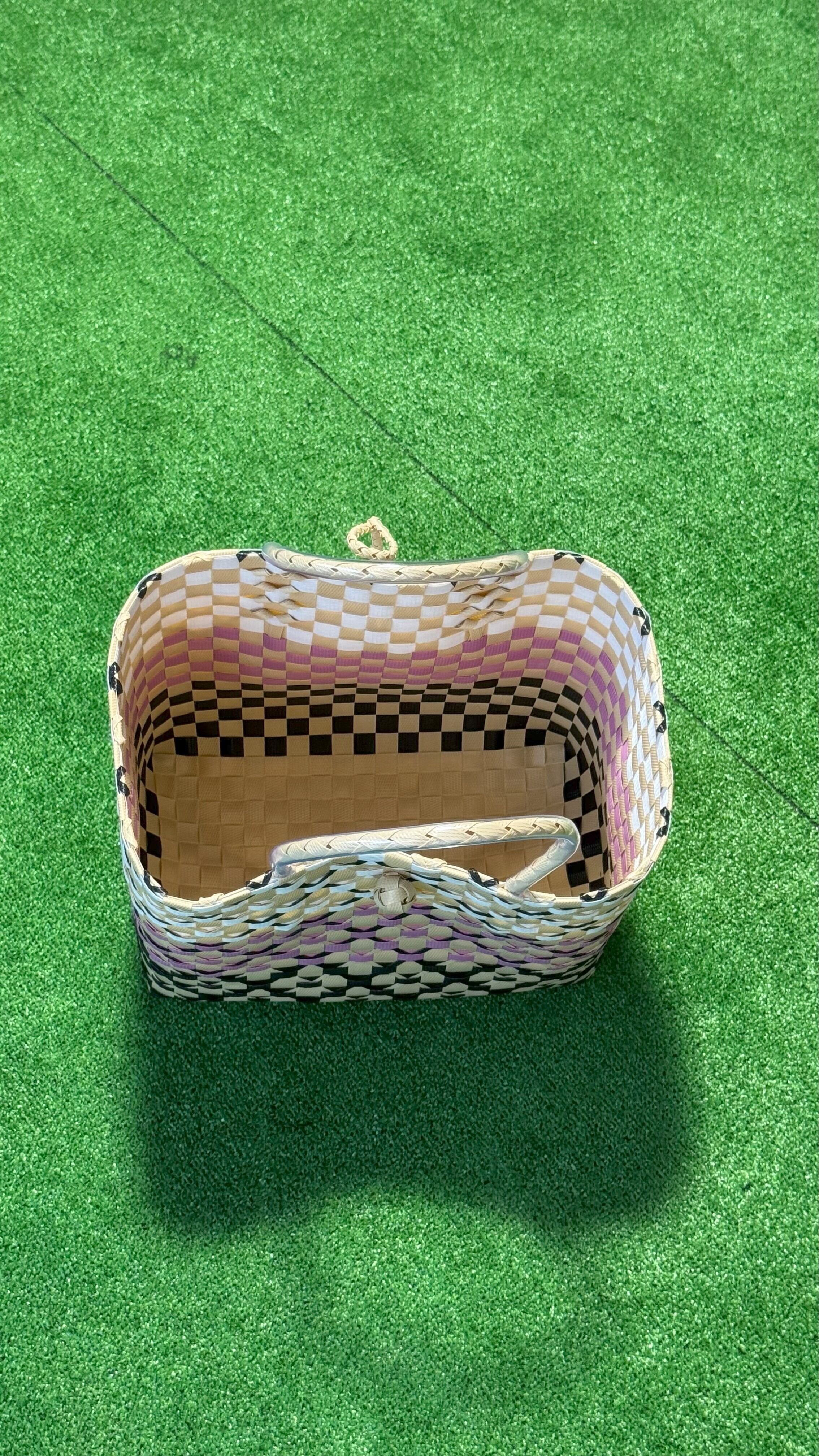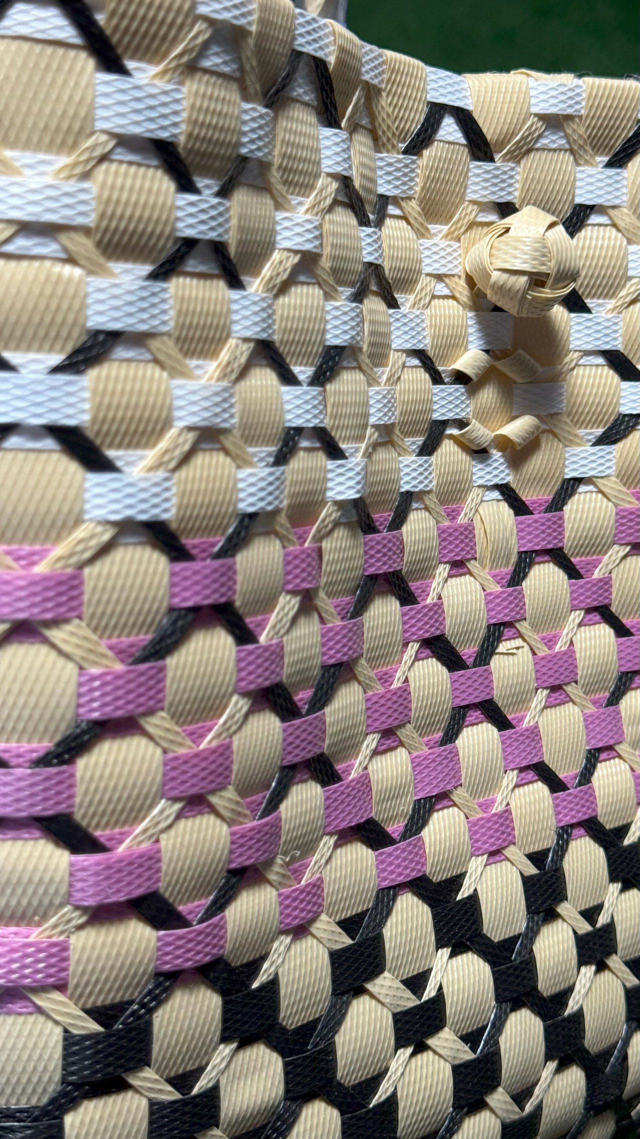サンダット・パサールバッグは、魅惑的なバリの花「サンダット」からインスピレーションを得た、洗練されたデザインが魅力です。熟練したバリの職人によって、再利用プラスチックを用いて丁寧に作られており、スタイリッシュな外観だけでなく、サステナビリティという意味ある物語も込められています。