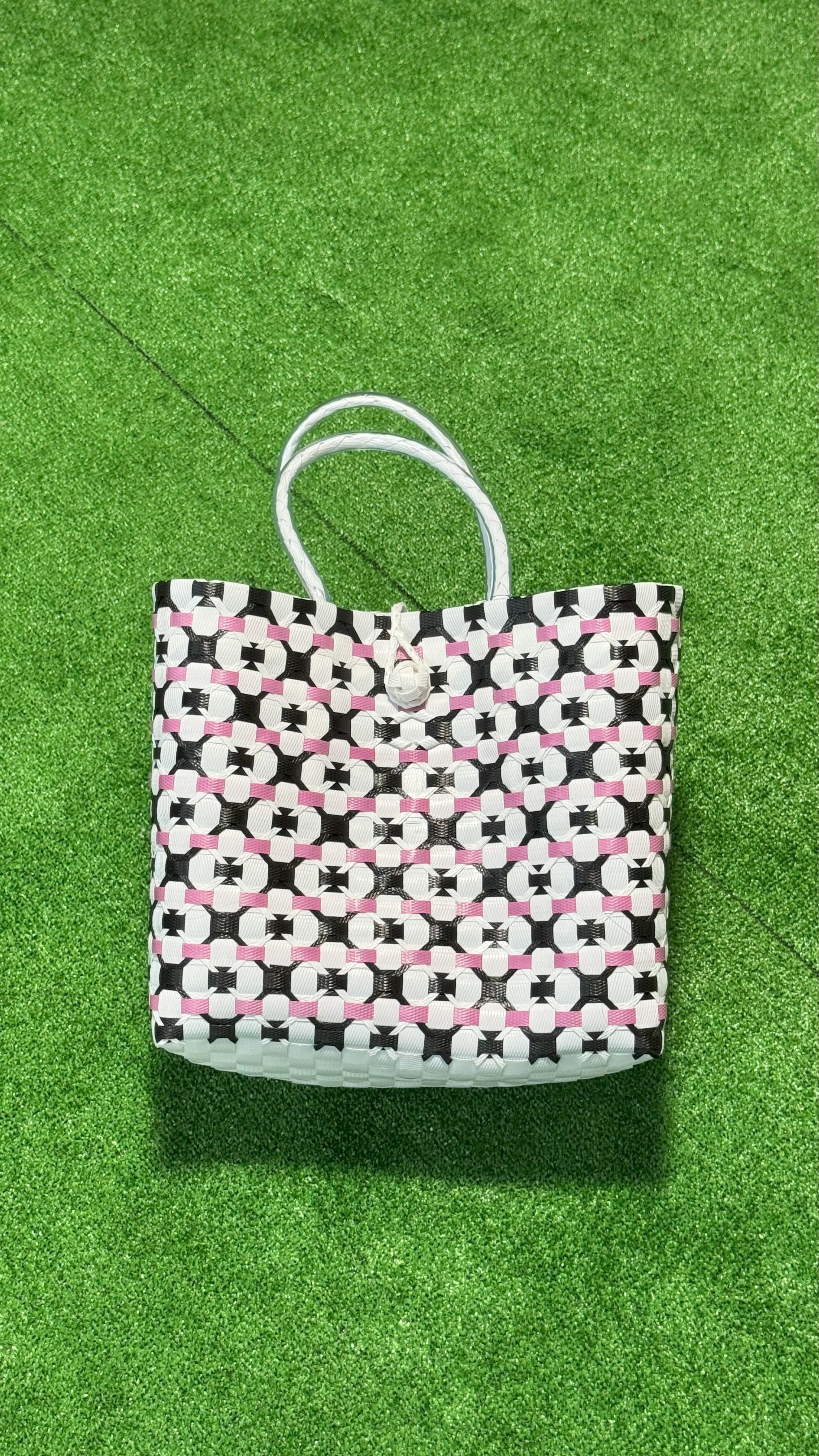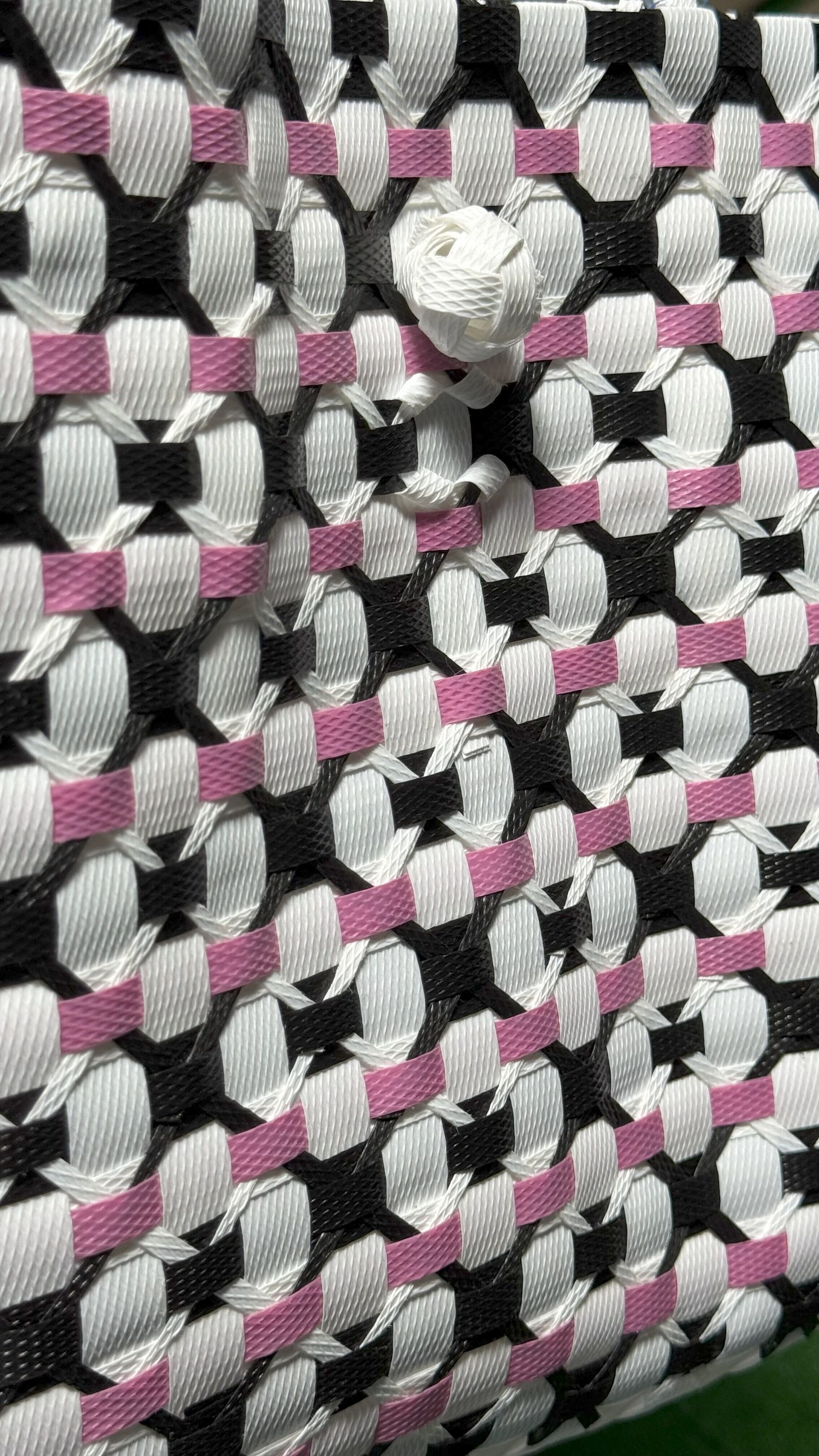 サンダット・パサールバッグは、魅惑的なバリの花「サンダット」からインスピレーションを得た、洗練されたデザインが魅力です。熟練したバリの職人によって、再利用プラスチックを用いて丁寧に作られており、スタイリッシュな外観だけでなく、サステナビリティという意味ある物語も込められています。