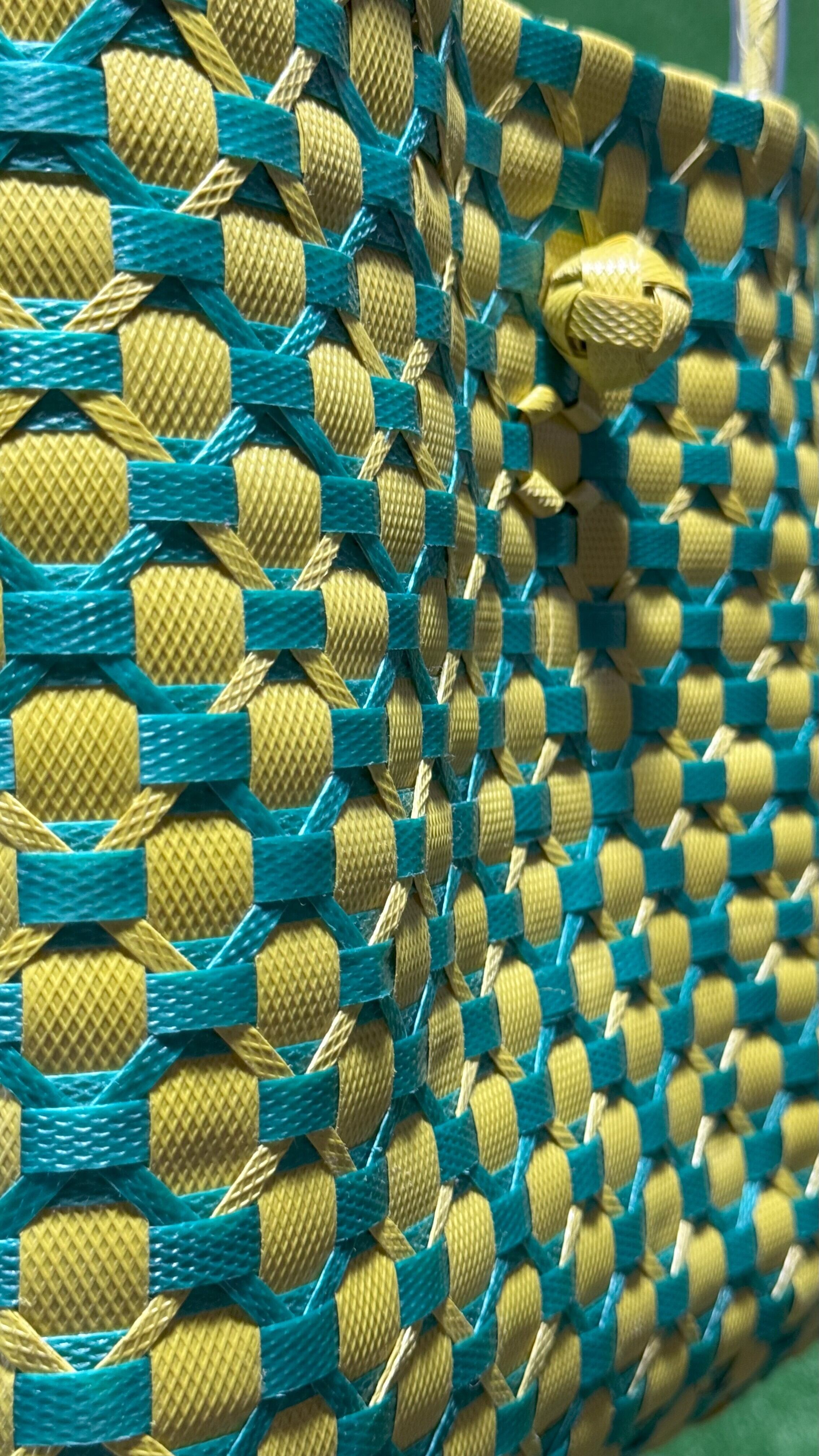 サンダット・パサールバッグは、魅惑的なバリの花「サンダット」からインスピレーションを得た、洗練されたデザインが魅力です。熟練したバリの職人によって、再利用プラスチックを用いて丁寧に作られており、スタイリッシュな外観だけでなく、サステナビリティという意味ある物語も込められています。