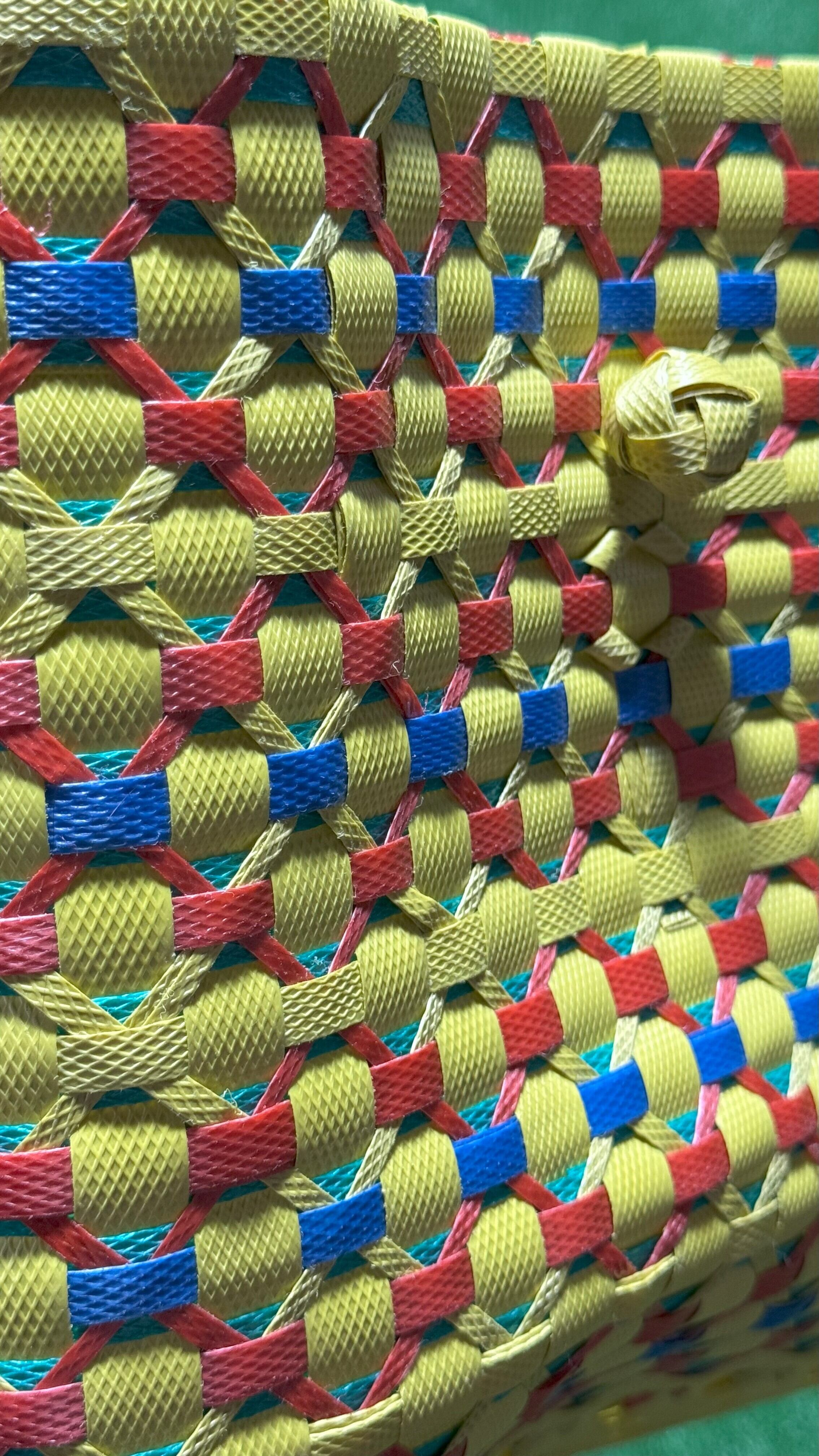 サンダット・パサールバッグは、魅惑的なバリの花「サンダット」からインスピレーションを得た、洗練されたデザインが魅力です。熟練したバリの職人によって、再利用プラスチックを用いて丁寧に作られており、スタイリッシュな外観だけでなく、サステナビリティという意味ある物語も込められています。