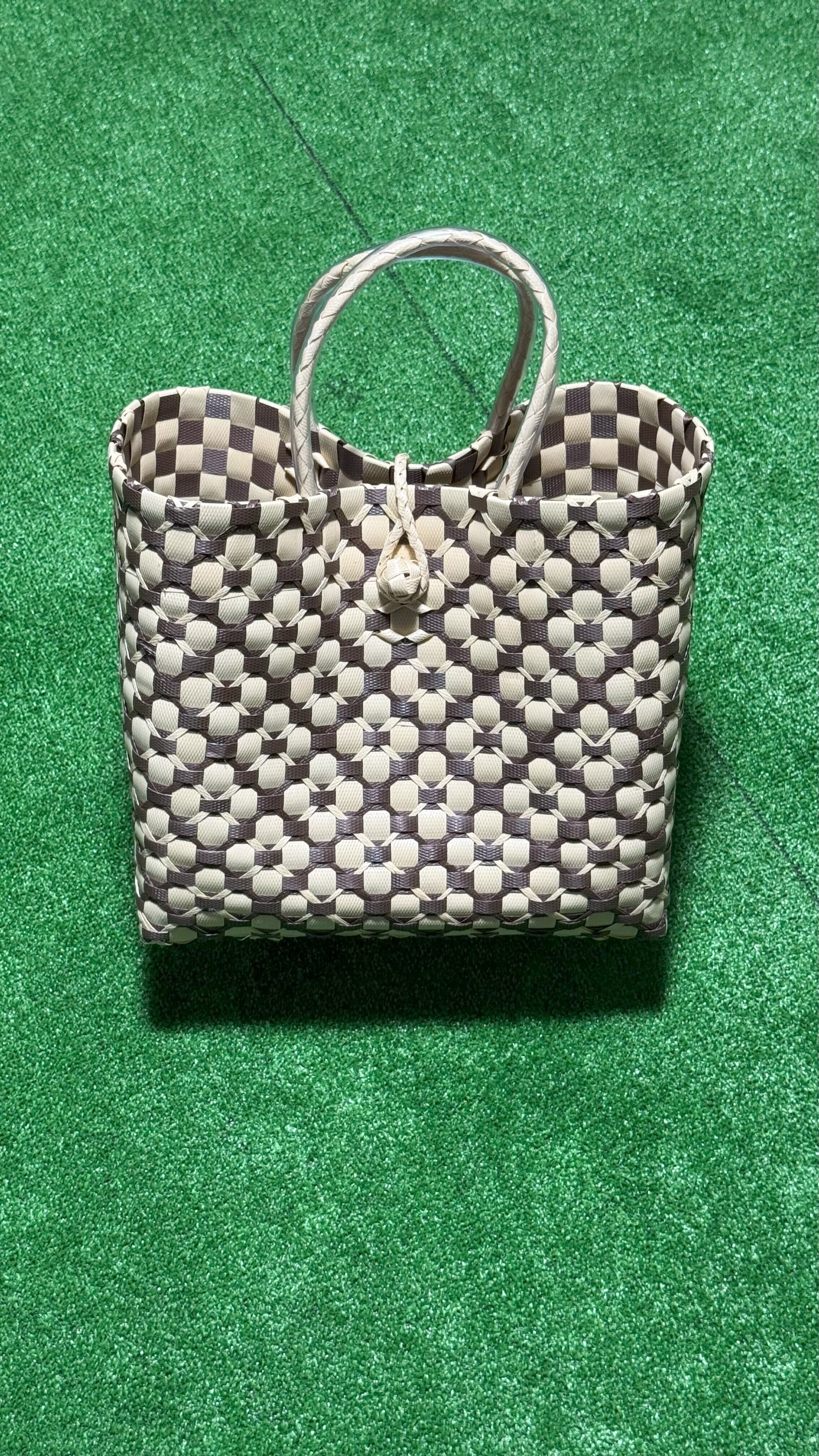 サンダット・パサールバッグは、魅惑的なバリの花「サンダット」からインスピレーションを得た、洗練されたデザインが魅力です。熟練したバリの職人によって、再利用プラスチックを用いて丁寧に作られており、スタイリッシュな外観だけでなく、サステナビリティという意味ある物語も込められています。